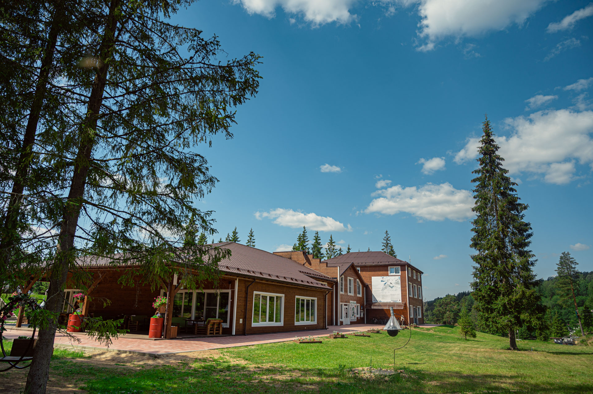 База отдыха располагается у подножья холмов и зимой действует как горнолыжный курорт - 7 трасс для спуска, а летом это прекрасное место для отдыха на природе, где можно купаться в озере, кататься на wake board, ходить в верёвочный парк и провести лучшие каникулы с Nordic School!